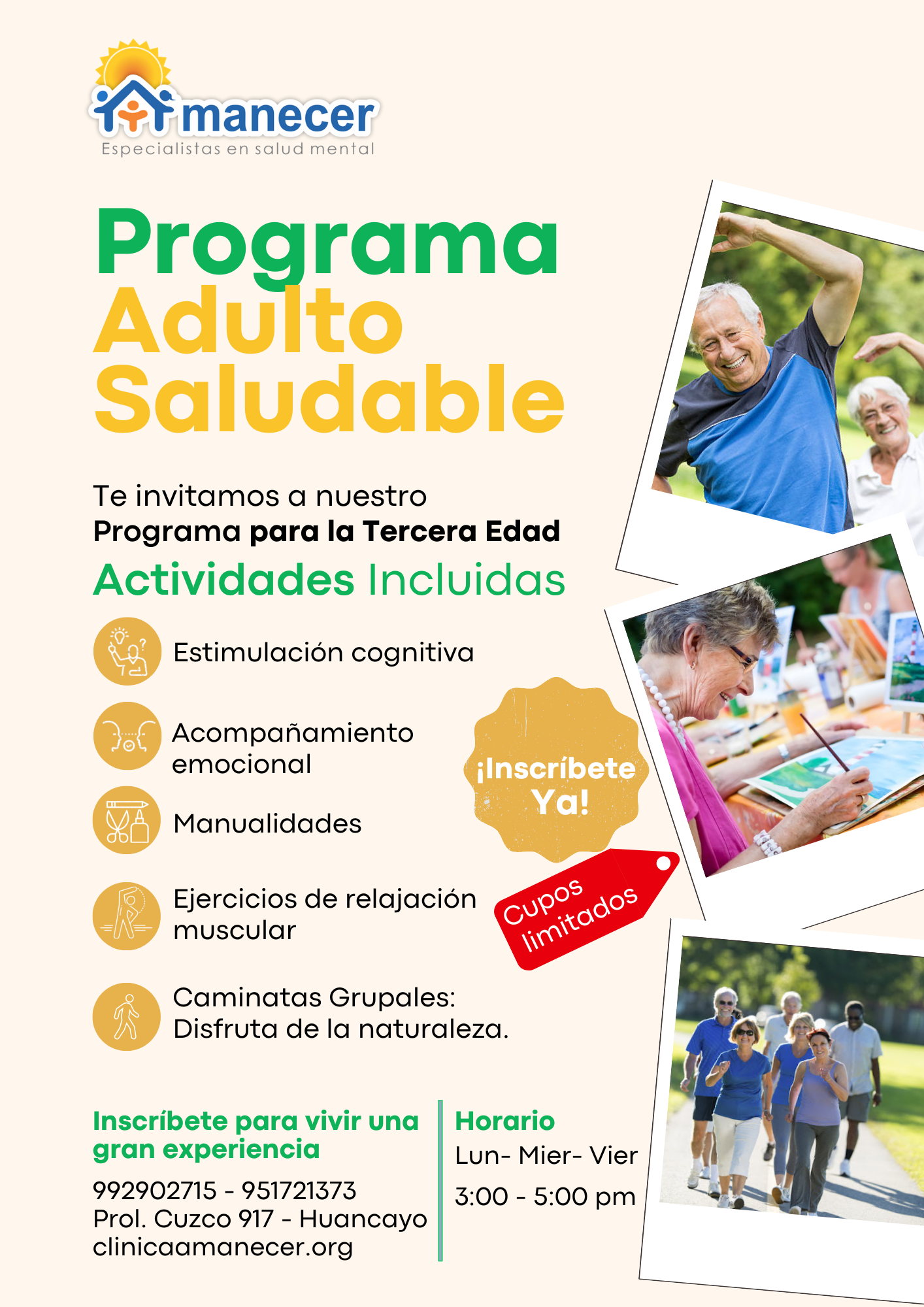 Si tienes un familiar adulto mayor o conoces alguien con deseos de participar, esta es la oportunidad, solo tienes que inscribirte ¡Ya! y su estadía grata está en nuestras manos.